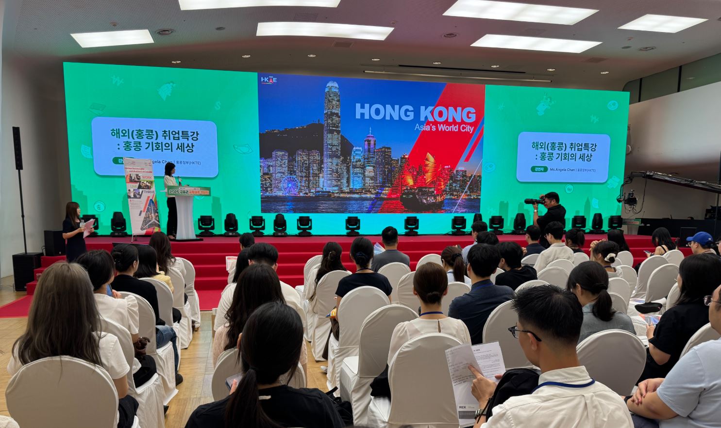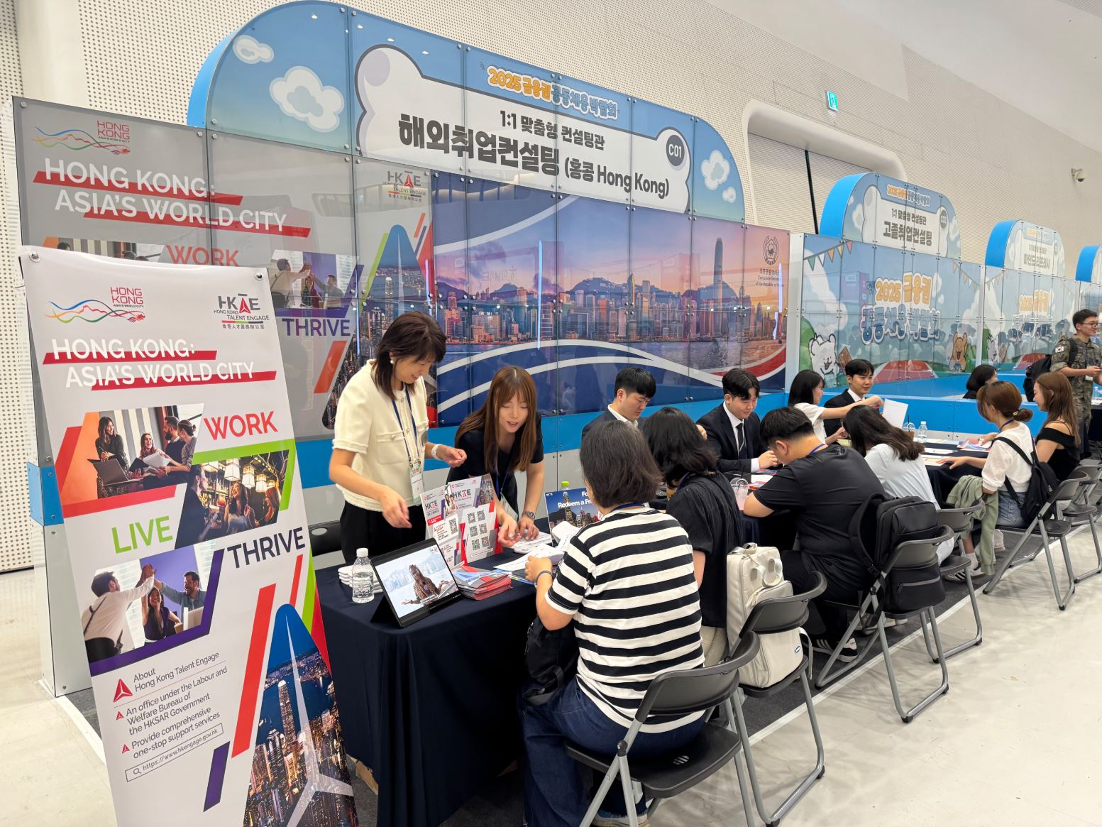 주홍콩총영사관은 8.20(수)-21(목) 한국에서 개최된 ‘2025 금융권 공동채용 박람회’ 에 홍콩정부의 해외인재유치 전담부서 HKTE와 함께 참가하여 홍콩취업관 부스 운영 및 “홍콩 기회의 세상” 이라는 주제로 취업특강 등의 활동을 전개하였습니다.